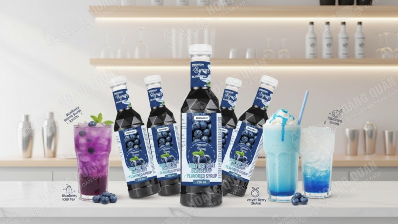 - Soda việt quất: 25–35ml syrup / ly