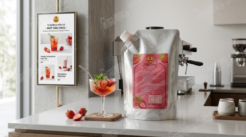 Gấu Lermao – Mứt Dâu 1kg là dòng mứt trái cây chuyên dùng trong pha chế, nổi bật với hương vị dâu tây chua ngọt tự nhiên, thơm nhẹ và màu đỏ tươi bắt mắt. Đây là nguyên liệu “best-seller” trong menu đồ uống nhờ khả năng dễ kết hợp – dễ bán – phù hợp nhiều tệp khách hàng.