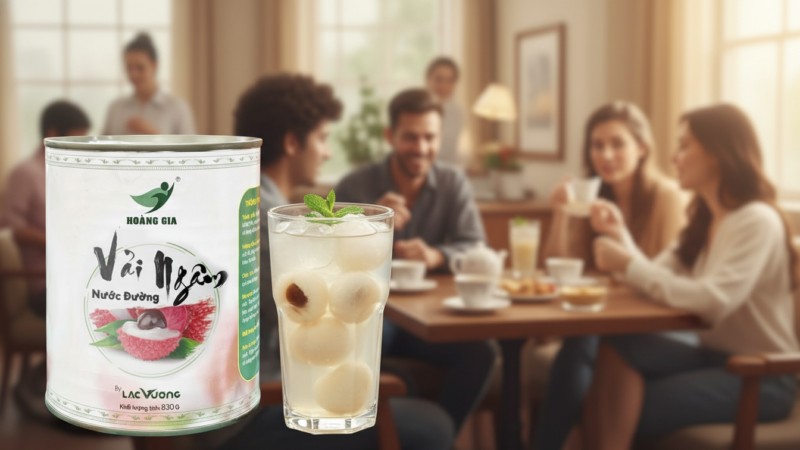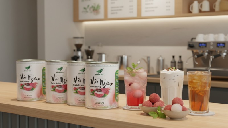 Vải ngâm Hoàng Gia được đánh giá cao ở phân khúc trái to – nước ngâm trong – vị ngọt vừa, giúp ly nước đẹp mắt và dễ bán.