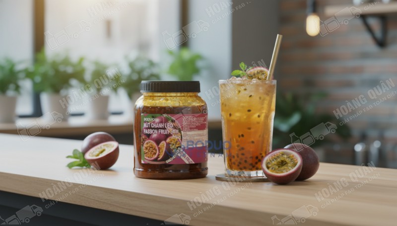 Sản phẩm nổi bật với vị chanh leo chua thanh sắc nét, hương thơm dày, hậu vị sạch, kết cấu mứt sánh mịn có hạt nhẹ, màu vàng cam đậm sang, giúp quán tạo menu “đã miệng – ghiền – bán chạy”, đặc biệt phù hợp làm món chủ lực (signature drink).