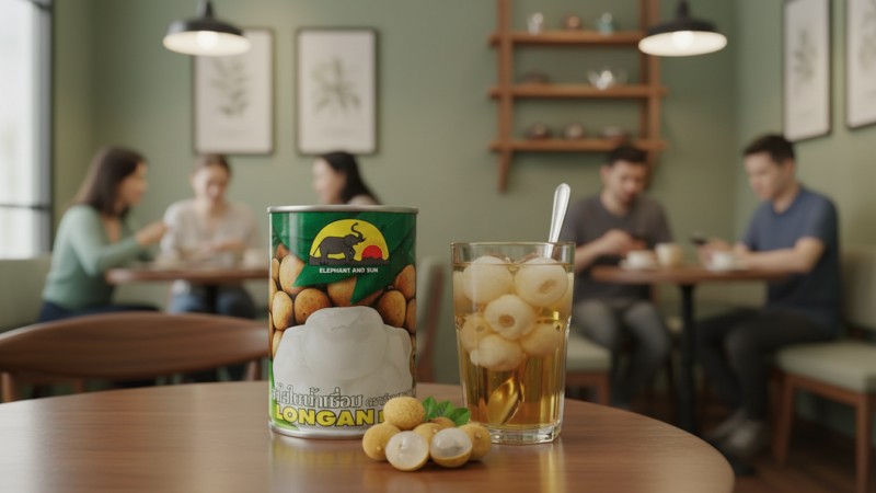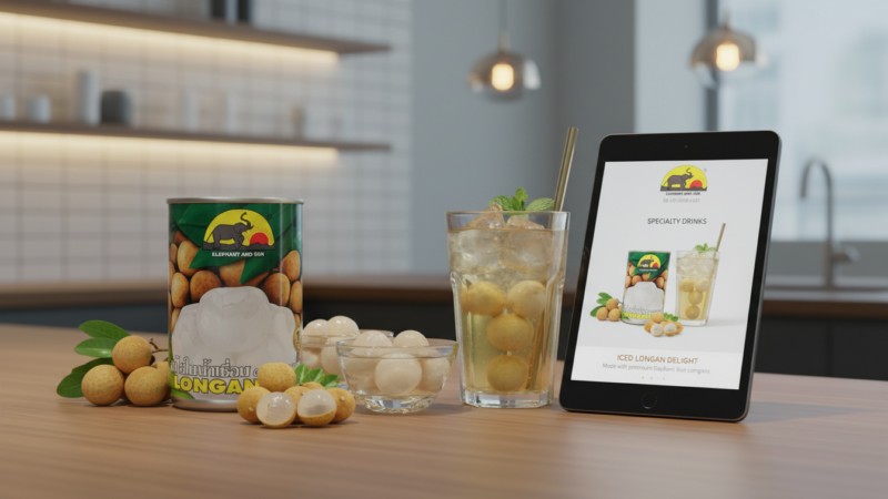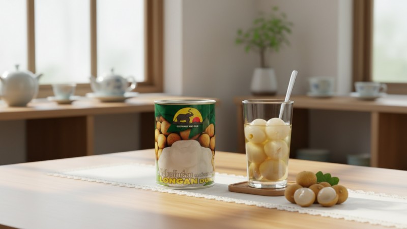 Nhãn ngâm Con Voi đáp ứng tốt nhu cầu của quán cần topping dễ dùng – ổn định – dễ phối vị.
