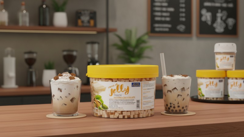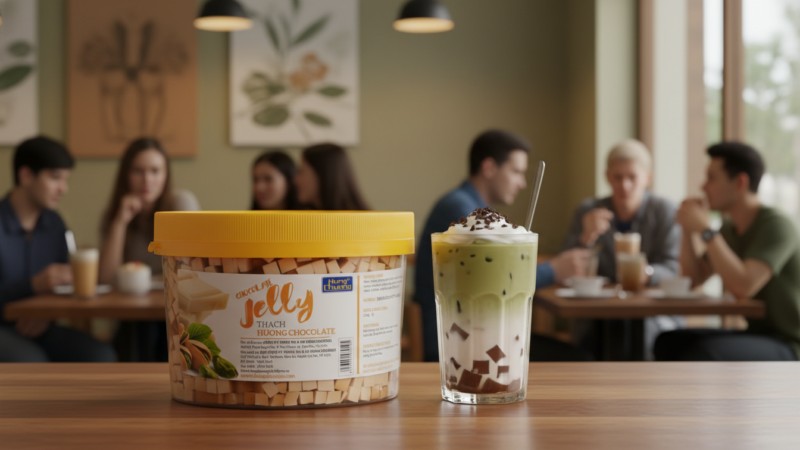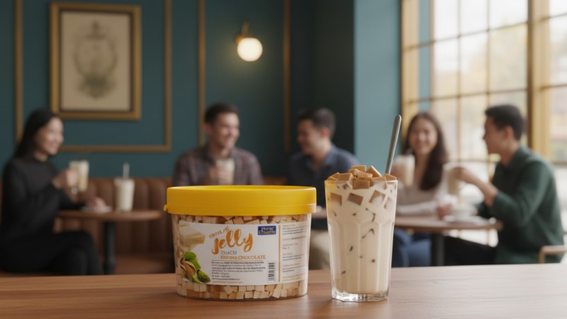 Trong nhóm topping dành cho đồ uống béo và dessert, các sản phẩm vị chocolate luôn có sức hút lớn nhờ hương vị quen thuộc, dễ ăn và phù hợp nhiều độ tuổi. Khi kết hợp với trà sữa, sữa tươi hay cà phê, thạch chocolate giúp món uống đậm vị hơn nhưng không bị ngấy.