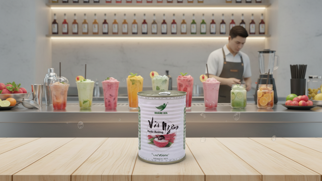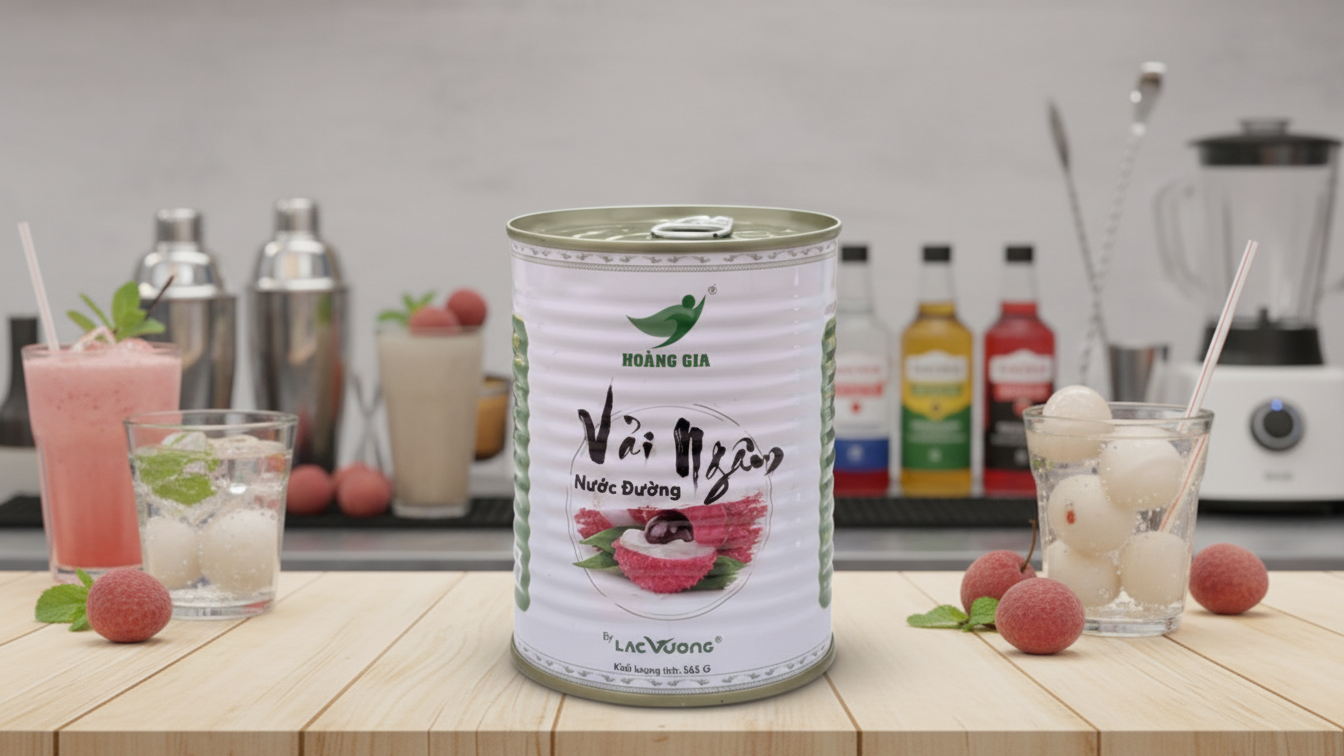 Vải Thiều Ngâm Nước Đường 565g là sản phẩm trái cây đóng hộp được sử dụng phổ biến trong quán trà sữa, trà trái cây, cà phê, quán nước và nhà hàng. Với quả vải to – thịt dày – ngọt thơm tự nhiên – nước đường trong, sản phẩm giúp quán pha chế nhanh, ổn định hương vị và tiết kiệm chi phí so với vải tươi theo mùa.